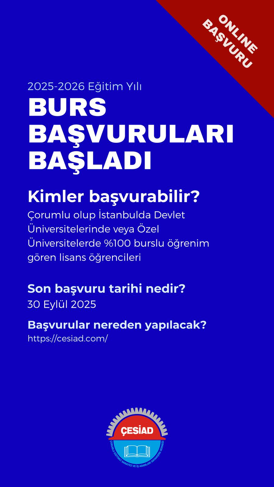 - 9 Eylül 2025 : Burs başvuruları başlangıcı